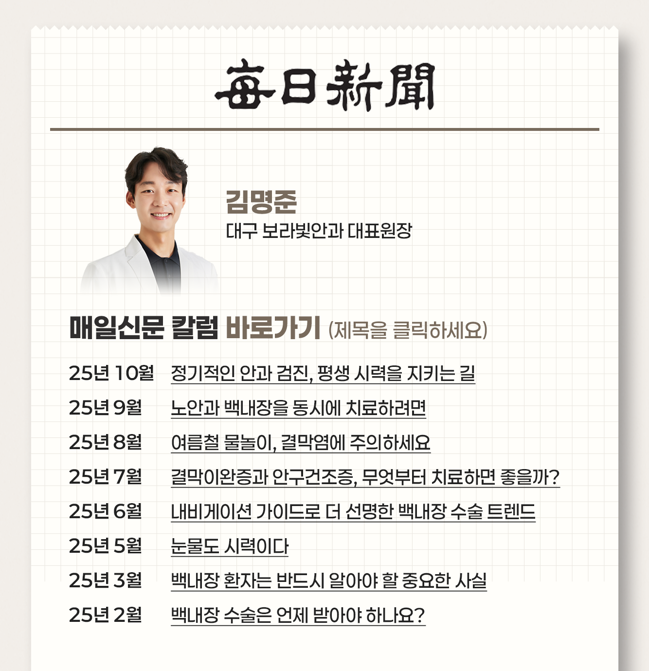 대구 백내장 수술·안구건조증·녹내장 | 보라빛안과